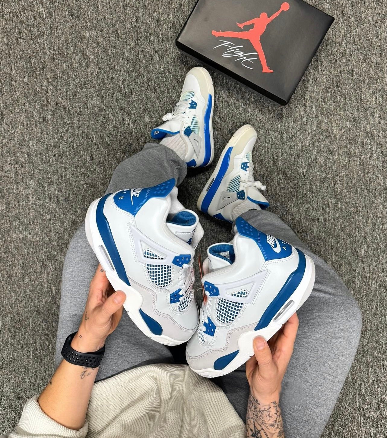 Le Air Jordan 4 Retro Military Blue sono rapidamente diventata un'icona. Collezionisti e appassionati di sneaker hanno celebrato con entusiasmo il revival della colorway blu militare per un modello senza tempo. L'amato logo Nike Air si trova sul tallone e rimane fedele alla versione originale del 1989.
