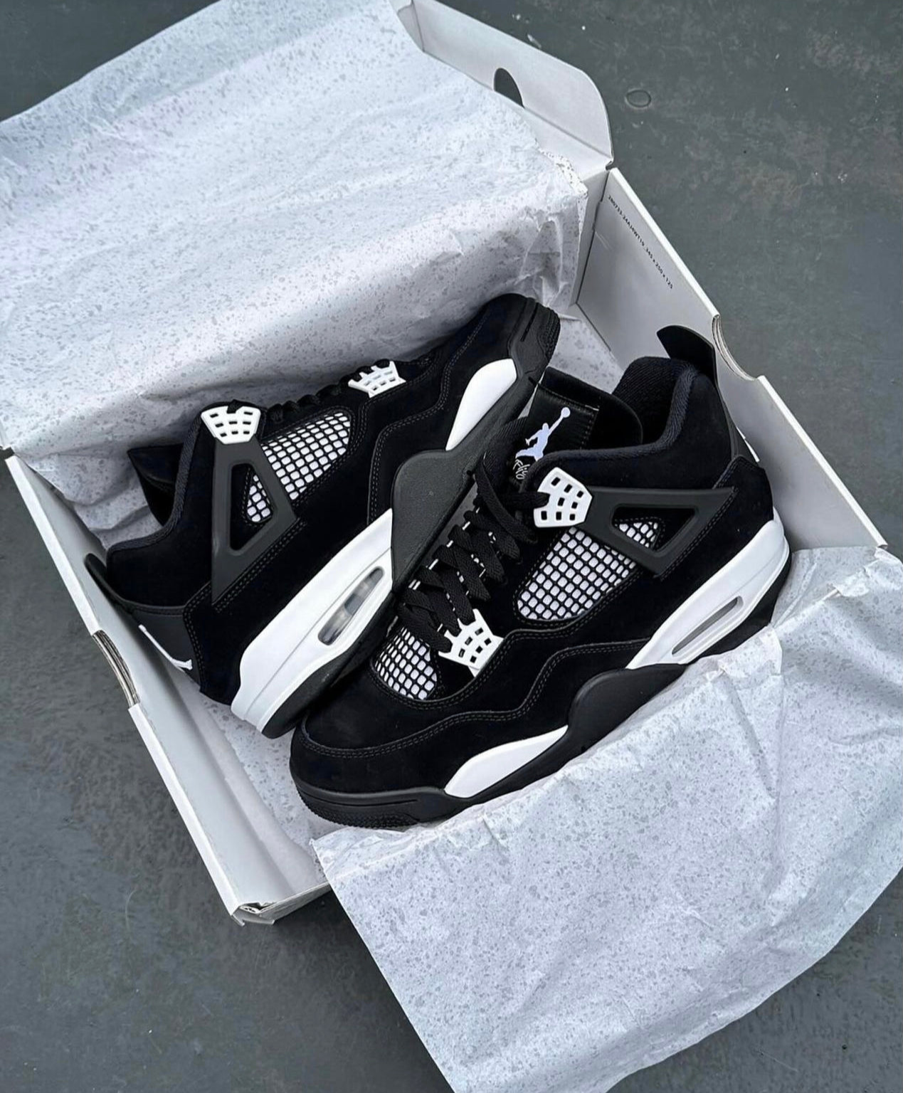 Le Air Jordan 4 White Thunder, ispirate alle amatissime Yellow Thunder del 2023, presentano un audace contrasto tra la tomaia in nubuck nero e dettagli bianchi, arricchite da una suola bianca che si contrappone nettamente a quella nera, creando un look sorprendente e versatile.